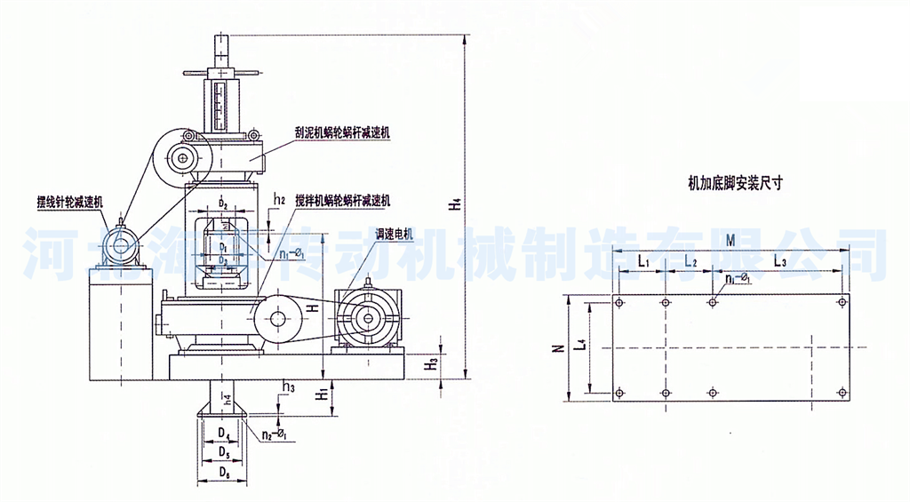擺線針輪減速機(jī)、調(diào)速電機(jī)通過鏈輪鏈條、三角帶輪帶動(dòng)或直聯(lián)。該設(shè)備為低速輸出傳動(dòng)裝置,輸出扭矩大、噪音低、運(yùn)行平穩(wěn)、無泄漏。主要用于水處理設(shè)備排泥機(jī)械配套產(chǎn)品。減速機(jī)有手動(dòng)提升、手電兩用提升的等形式,可根據(jù)用戶要求增加安全剪切銷及彈簧式過扭矩自動(dòng)保護(hù)裝置(JGZ4500),確保整套設(shè)備安全運(yùn)轉(zhuǎn)。