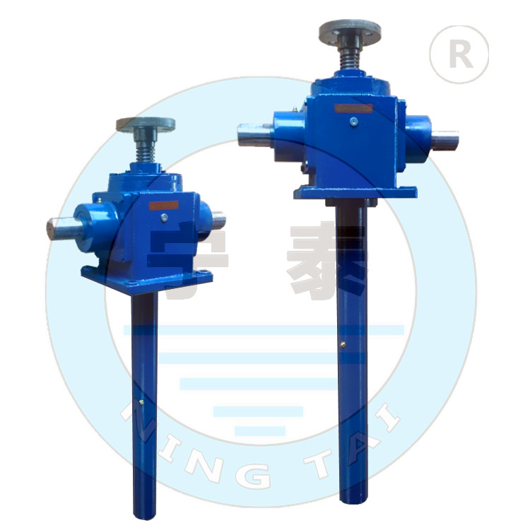 錐齒輪升降機(jī) 可廣泛用于機(jī)械、冶金、建筑、水利、化工、醫(yī)療、文化衛(wèi)生等各個行業(yè)。如:機(jī)械加工上重壓緊固裝置升降臺、翻轉(zhuǎn)裝置及塑料加工機(jī)械等;安裝和維修用爬梯和工具升降架、機(jī)車維修升降臺位;軋機(jī)滾道間隙調(diào)整、棺材或板材送位置的調(diào)整;鑄造啟模或混凝土凝土造型;冶煉方面用于調(diào)整電極、熱液體澆鑄;建筑方面用于移動設(shè)備和組合成品的模板,可升降的窗戶、墻壁、圍墻等;文化衛(wèi)生方面可升降舞臺、調(diào)整游泳池池面高度、調(diào)整手術(shù)臺高度;水利方面用于水庫的閘門和保護(hù)板;科研方面用于不能用人力調(diào)整的運(yùn)動等。特適用于大型的升降平臺。