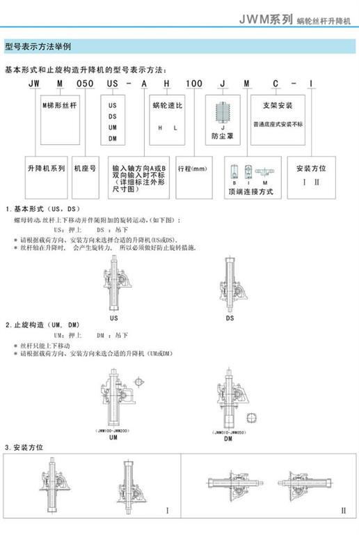 JWM絲桿升降機基本形式、止旋構(gòu)造及型號表示方法